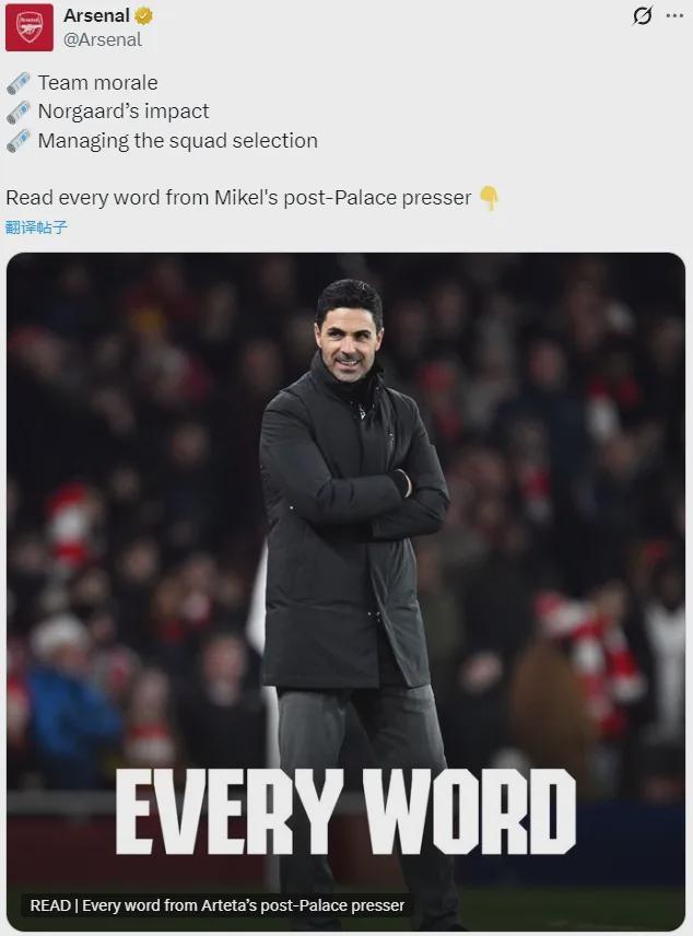 阿爾特塔在上場的賽后新聞發(fā)布會中談到了一些內(nèi)容,我們只看沒有時效性的消息。